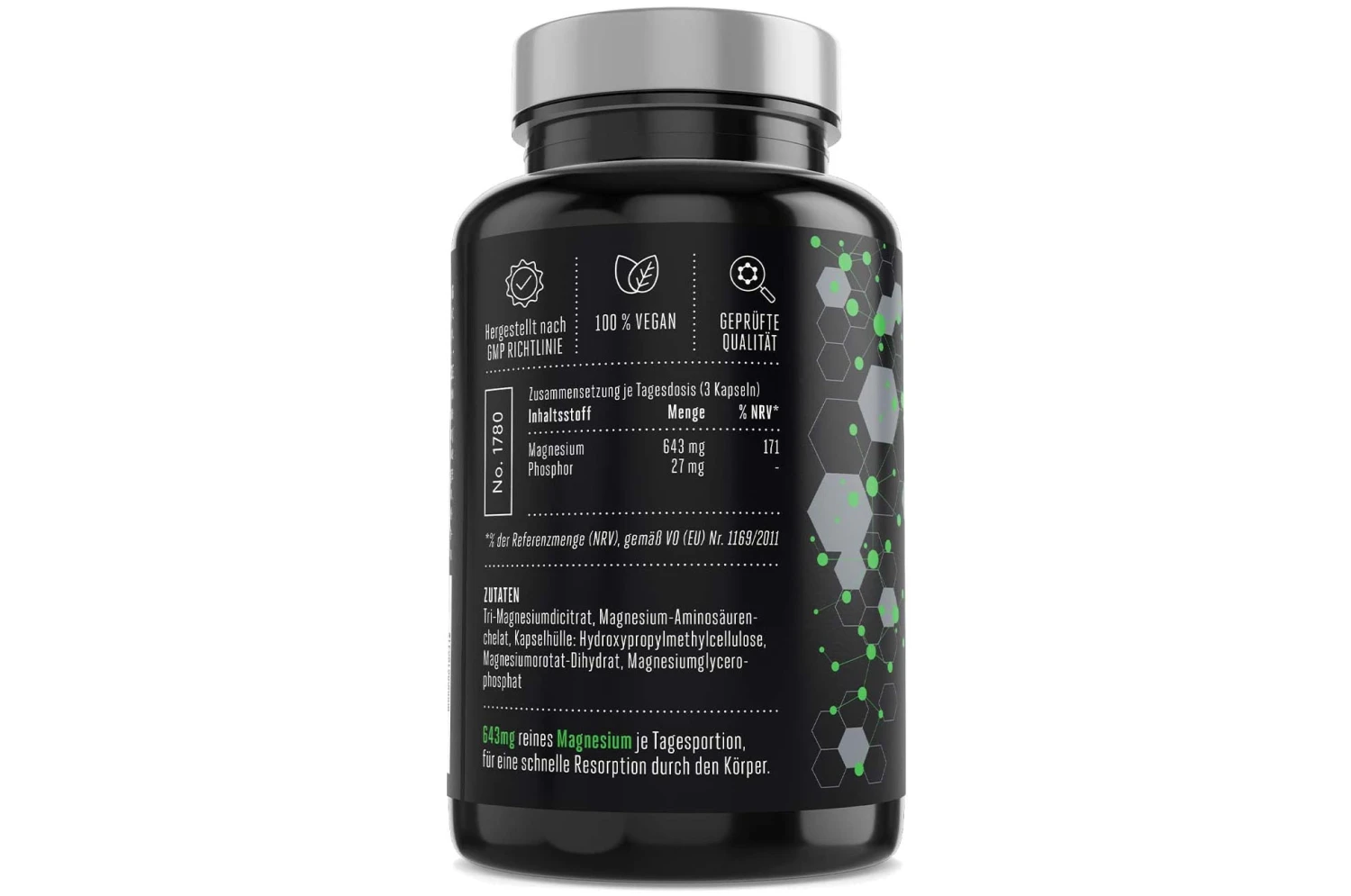 - 643 mg de magnésium pur par dose quotidienne
