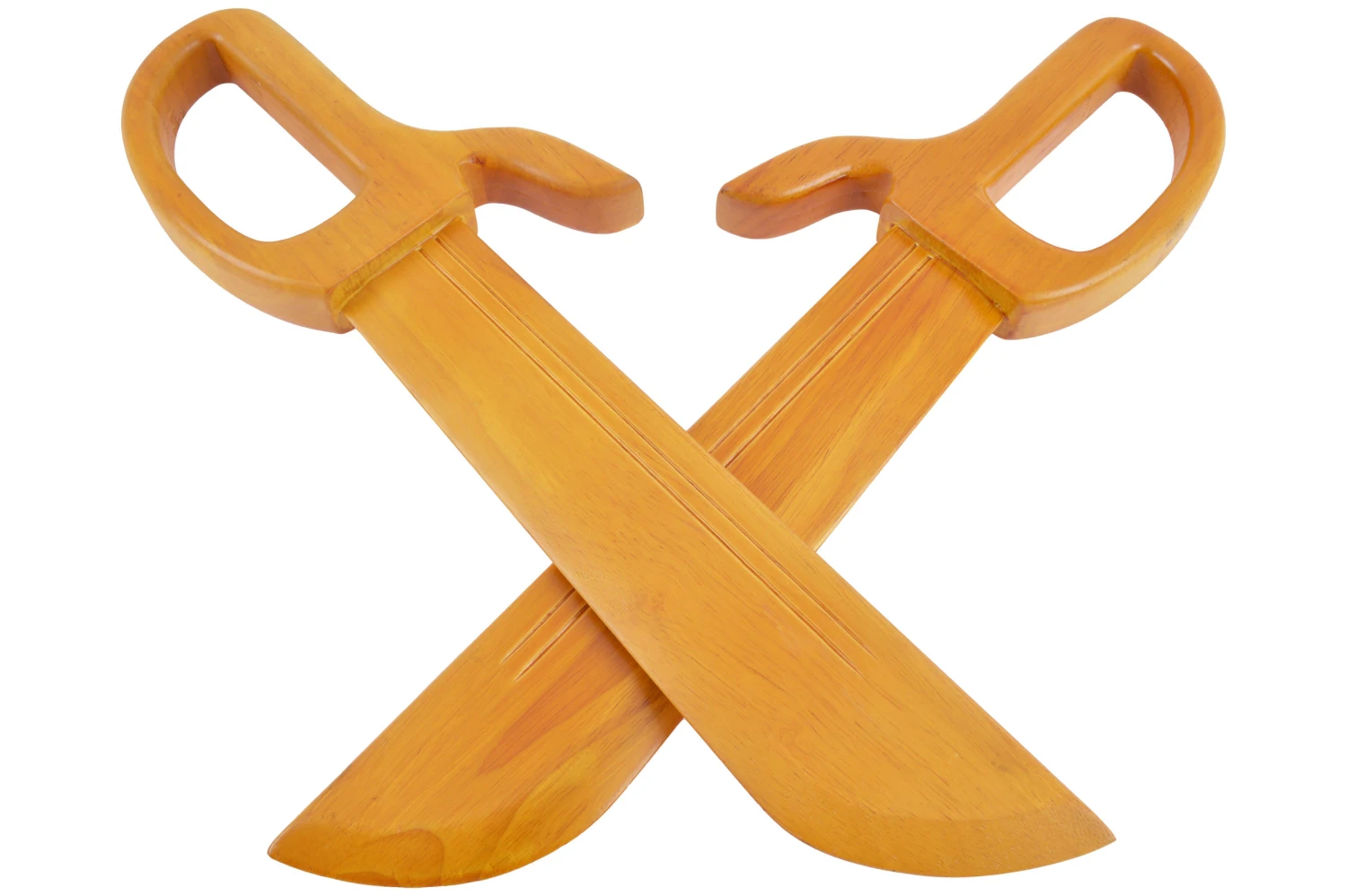 Paire de couteaux en bois adaptés à la pratique du «Yong Chun» (Wing Chun ou Wing Tsun). Parfois aussi appelés «Niu Er Shuang Dao», qui signifie littéralement double couteaux oreilles de bœuf, en référence à leur forme.