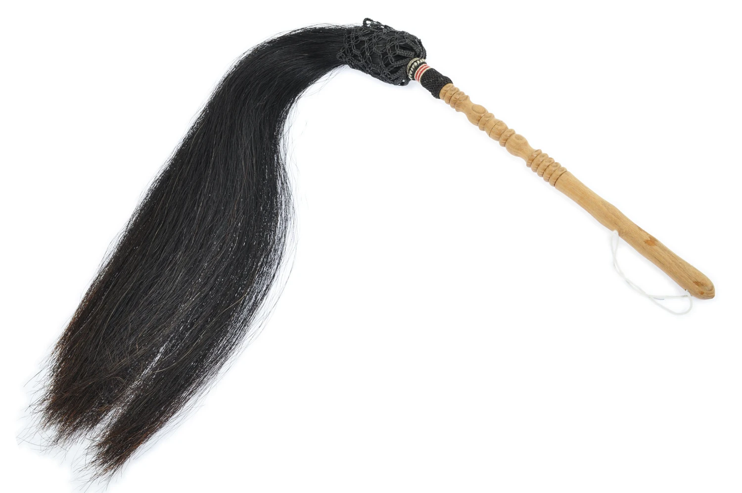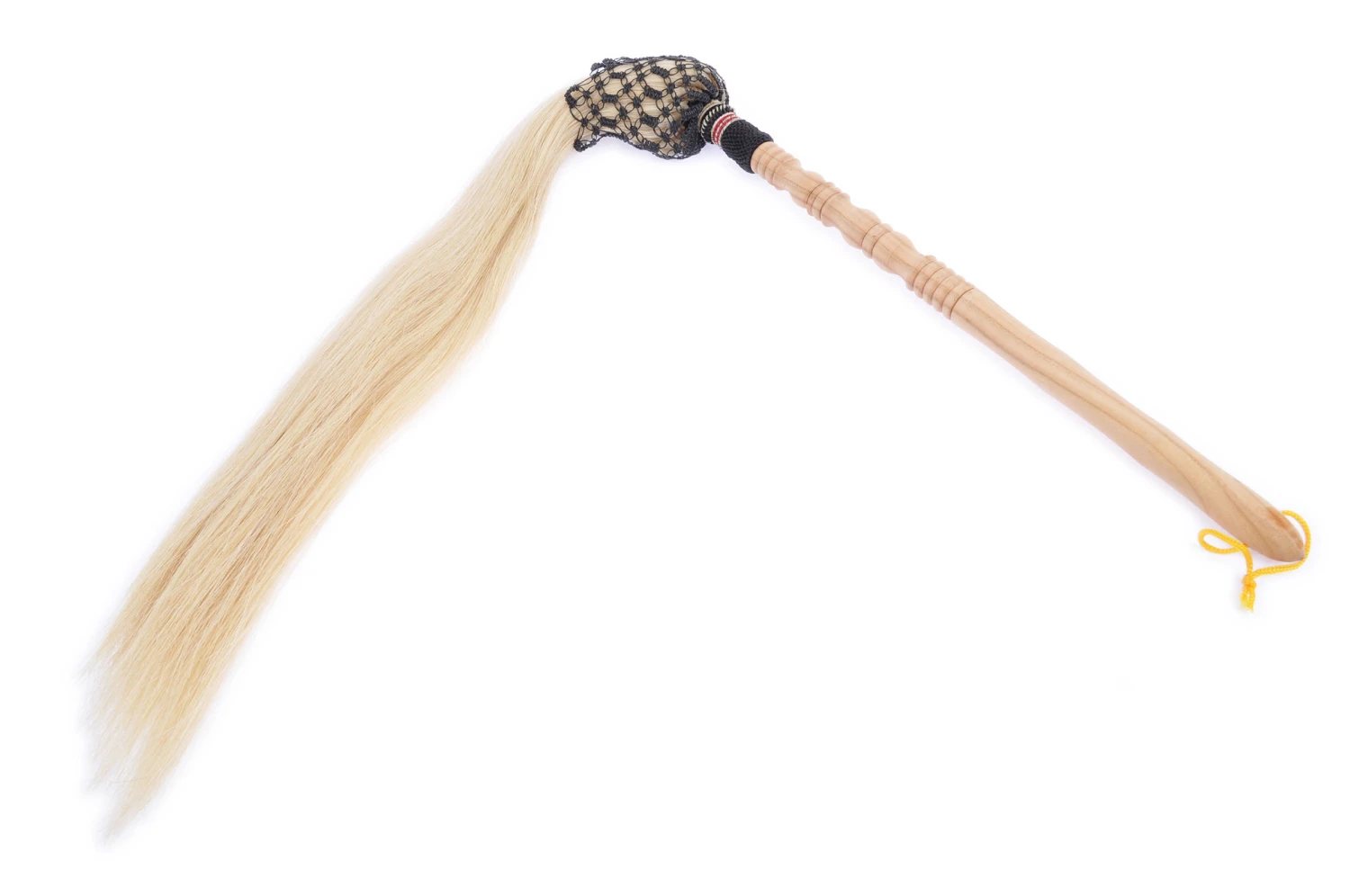 Cravache, aussi appelée fuchen (littéralement essuyer la poussière), fabriquée à Wudang dans les matériaux traditionnels bois et crin de cheval (en couleur naturelle blanc ou teinté).