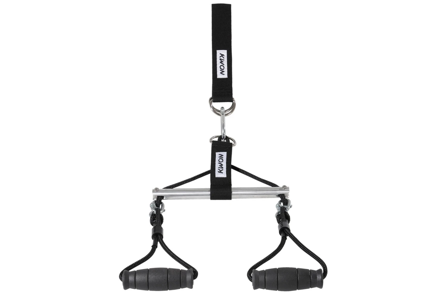 Le dispositif d’entraînement est portable, alors une alternative parfaite envers la barre de traction pour un entraînement efficace de la musculature du dos, des bras et du tronc.