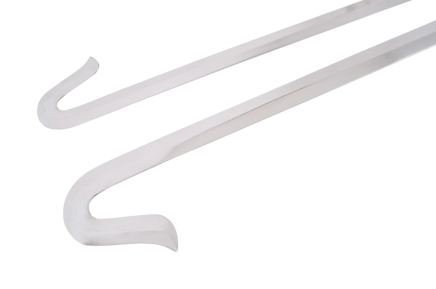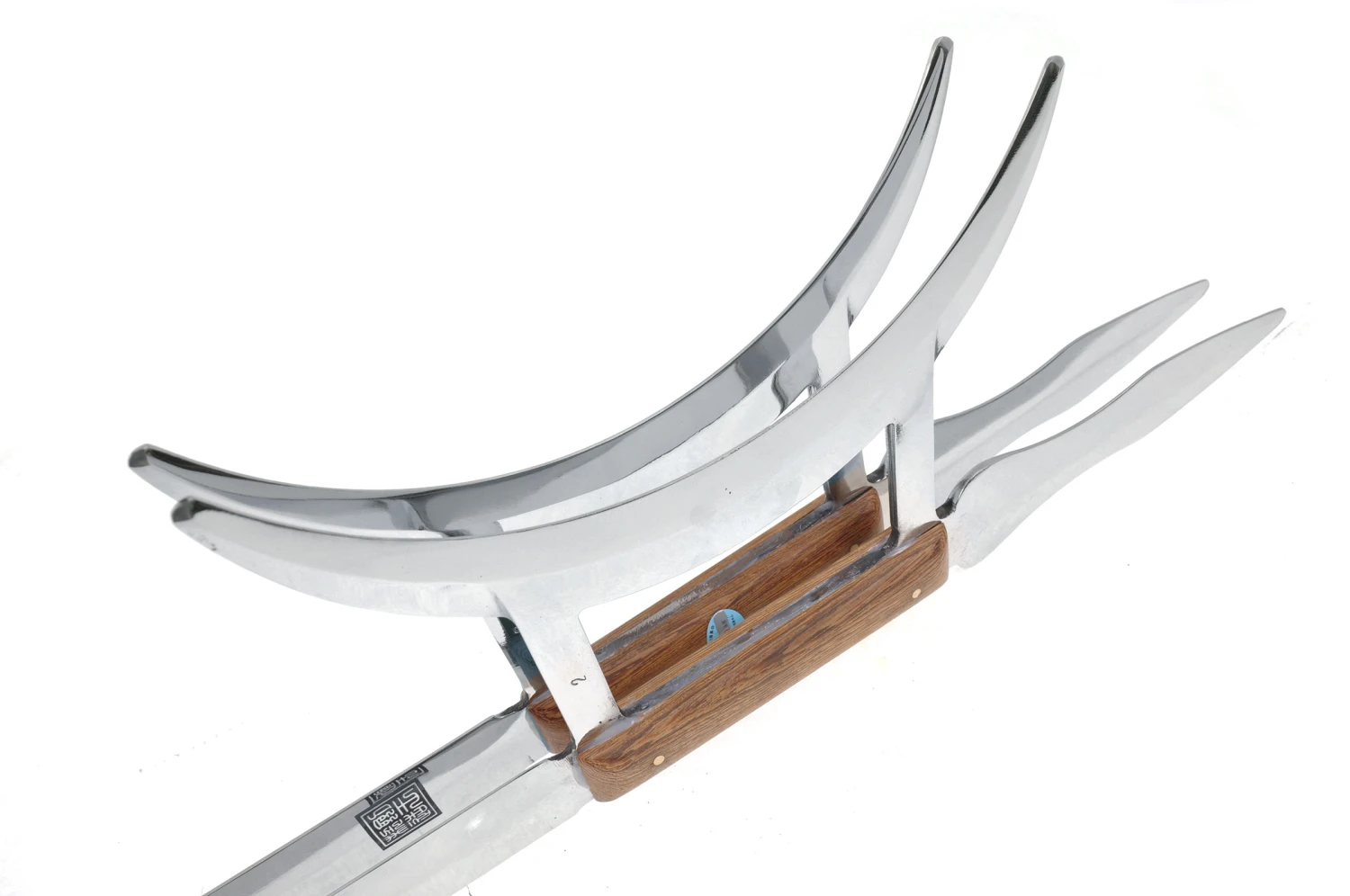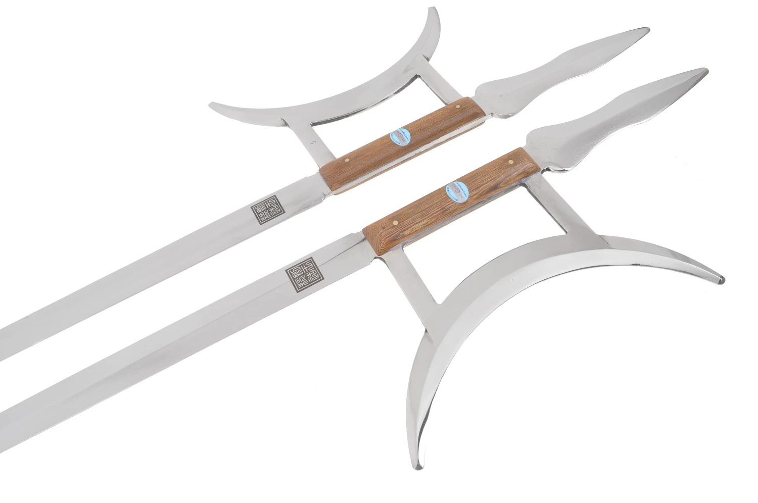 Crochets de très bonne qualité avec de belles finitions, en acier inoxydable, rigides, avec poignées en bois. Fabriqué par la forge Jian Wang, haut de gamme des produits Kung Fu en Chine.