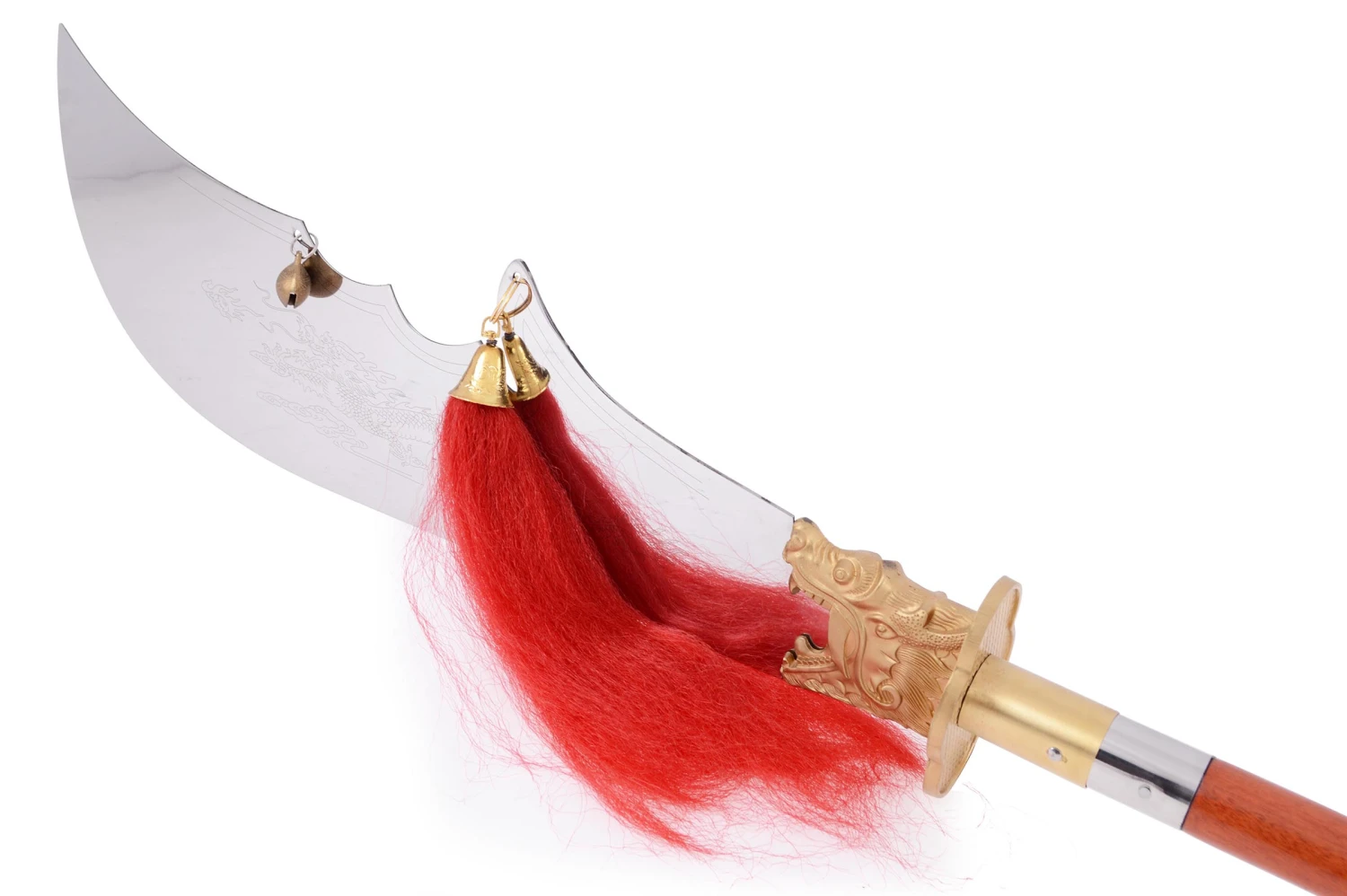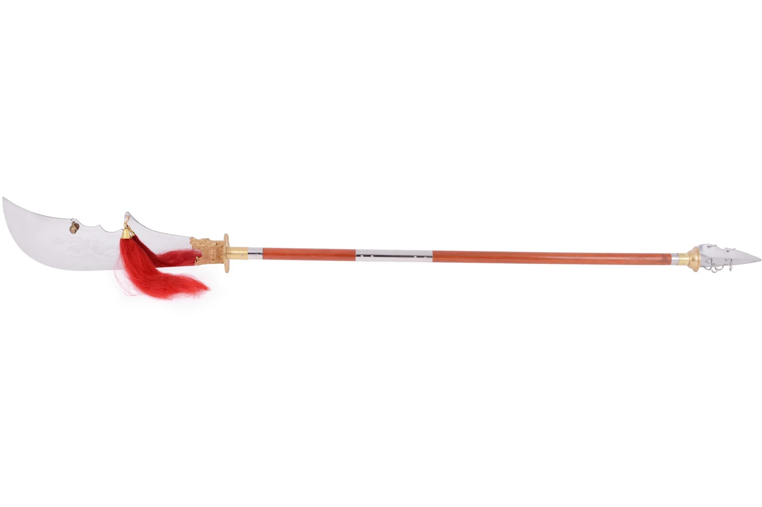 Hallebarde démontable à lame inox rigide (tendant vers semi rigide) avec une garde en alliage cuivre. Longue et légère. Facilement montable et démontable en 2 parties grâce à un pas de vis.