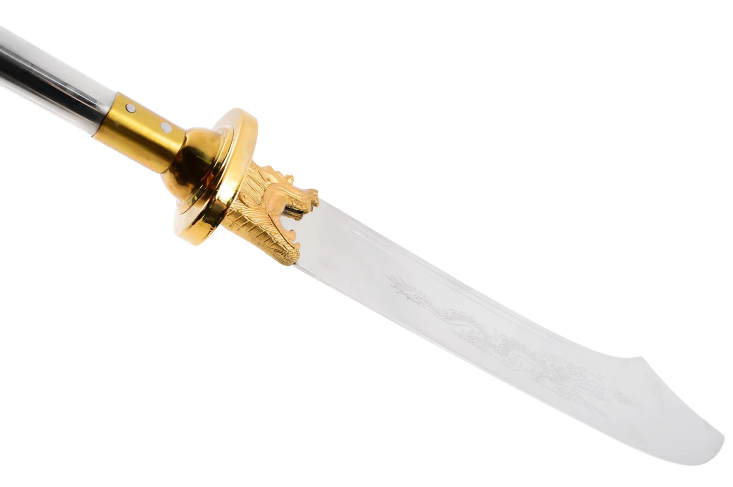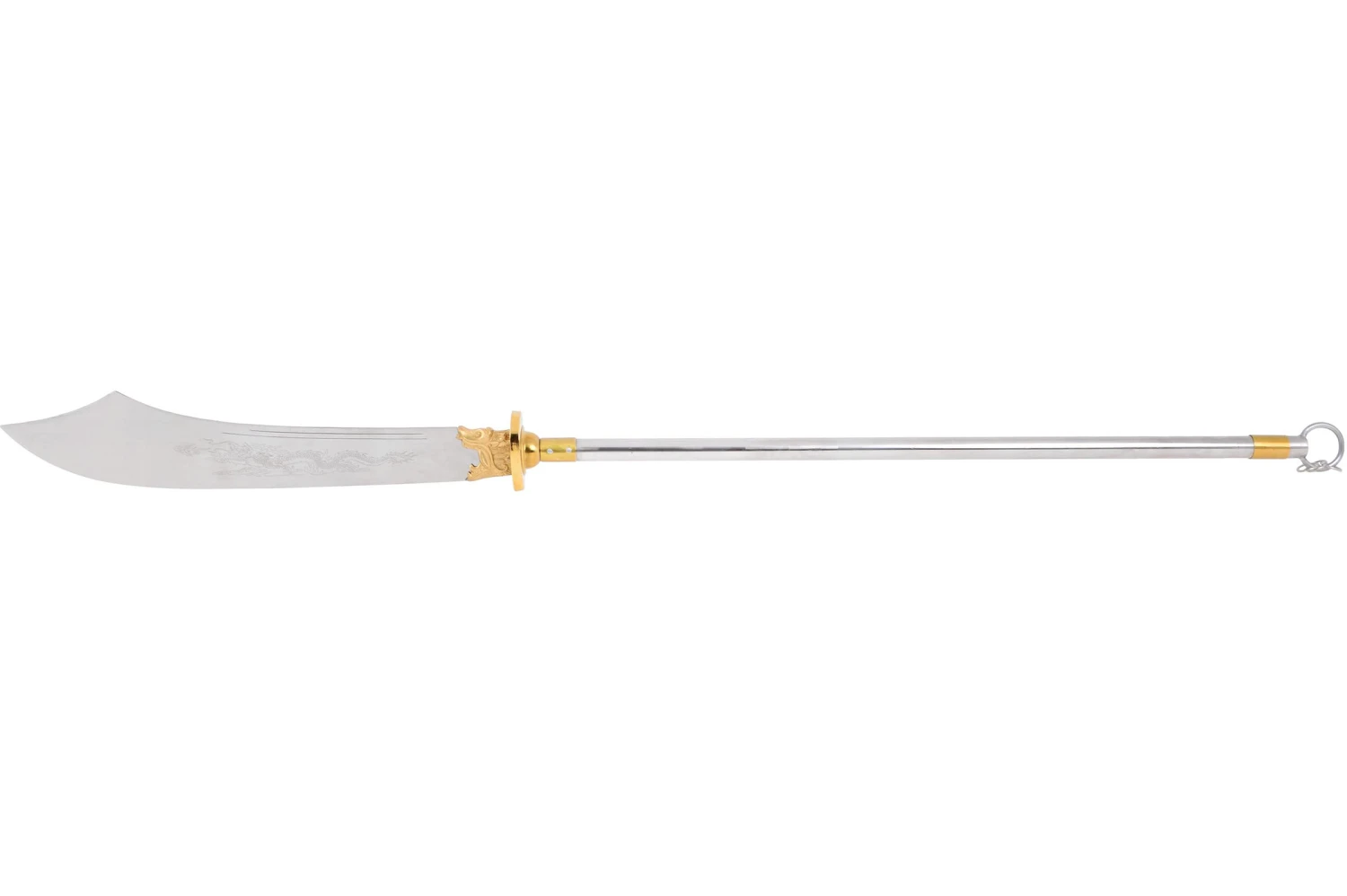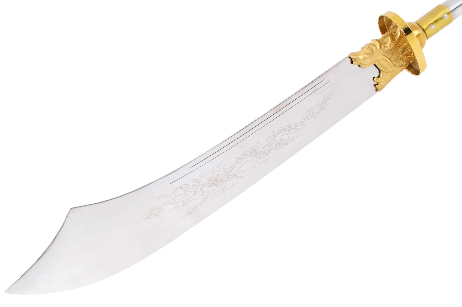 Modèle de hallebarde style pudao, haut de gamme avec de très belles finition. Garde en laiton en forme de dragon. Fabriquée à la main dans la province de Hebei.