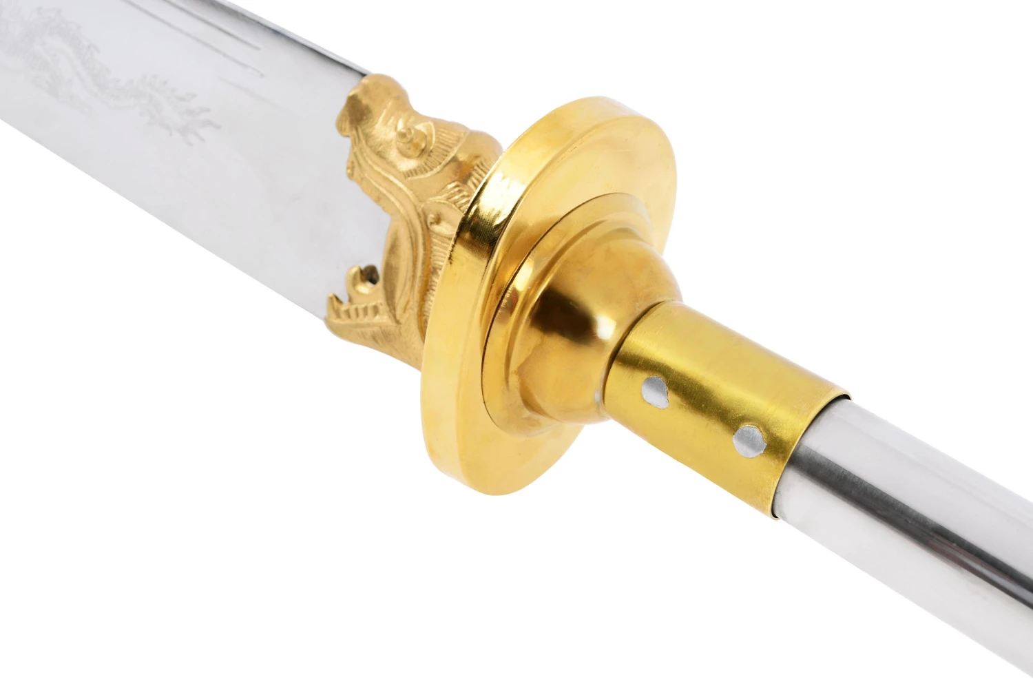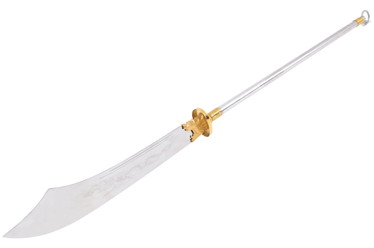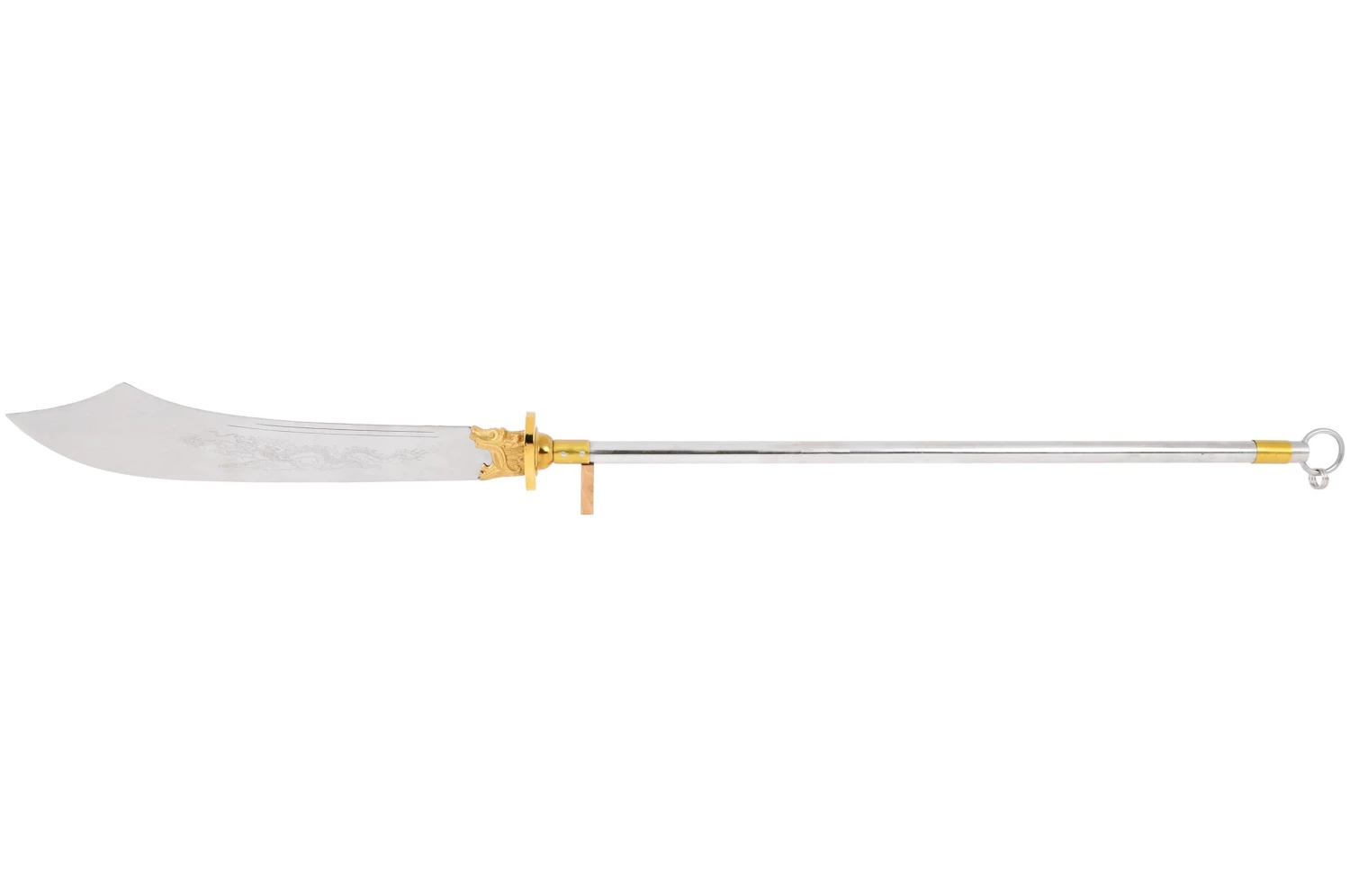 Modèle de hallebarde style pudao, haut de gamme avec de très belles finition. Garde en laiton en forme de dragon. Fabriquée à la main dans la province de Hebei.
