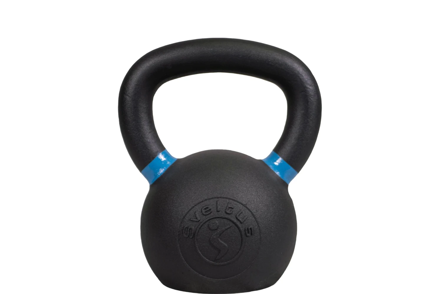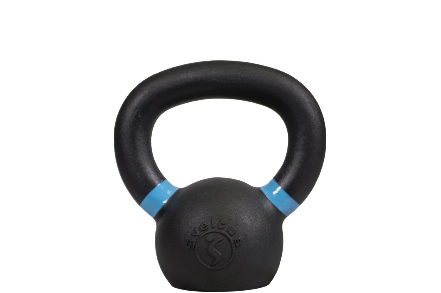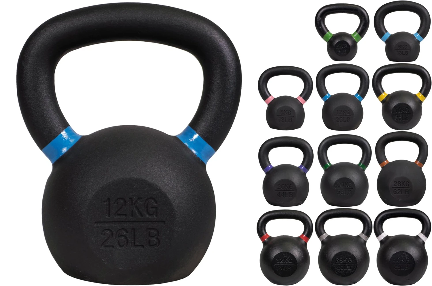 Excellent pour un entraînement en intérieur comme en extérieur. Design élégant avec un aspect noir mat. Fabrication monobloc en fonte de haute qualité. Le revêtement en poudre permet une prise confortable pour un mouvement complet et fluide. La base plate est conçue pour assurer une parfaite stabilité au sol et d’aller ainsi plus vite entre les exercices. Chaque poids est associé à une bague de couleur à la base des poignées pour repérer en un seul coup d’œil le kettlebell qu’il vous faut. Le poids est également gravé en kilos et en livres !