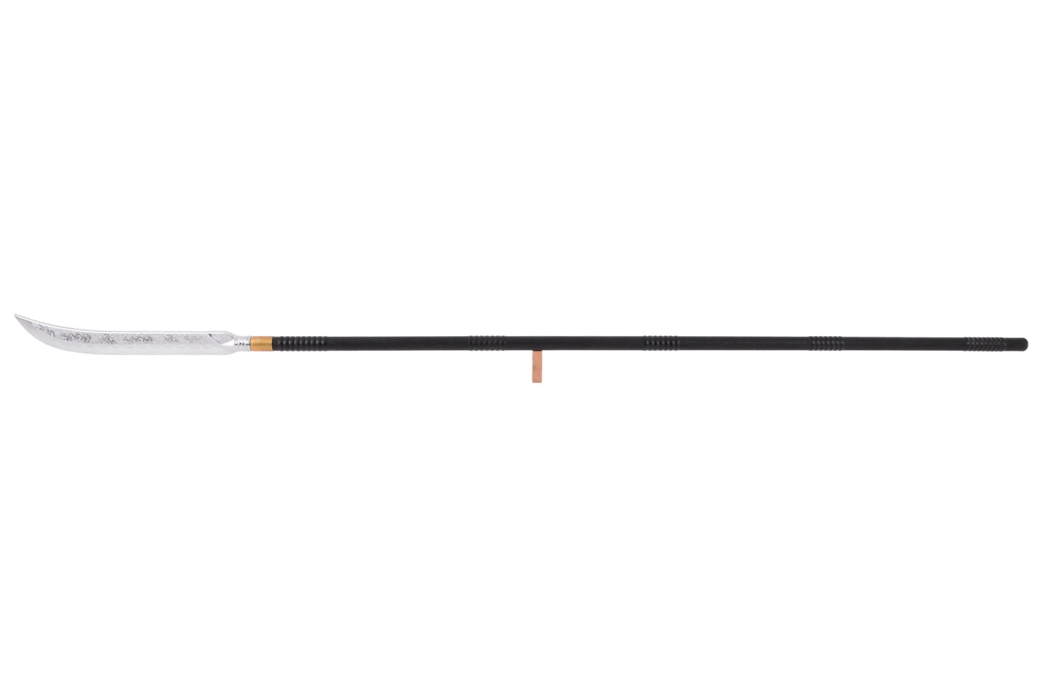 Naginata composé d’un bâton (de 152 cm ou 180 cm) et d’une lame de Naginata dévissable avec revêtement chrome ou noir.