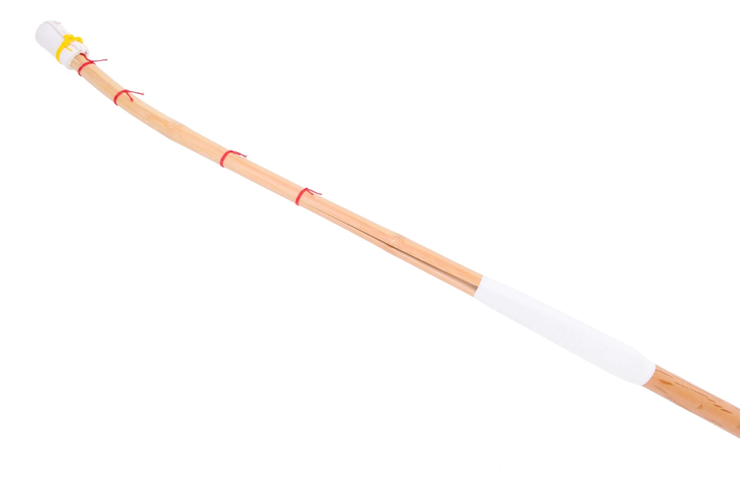 La naginata Xiao Xiangmu est constituée d’un bâton en chêne de 168cm et d’une pointe en bambou de 65cm. Elle mesure au total 220cm