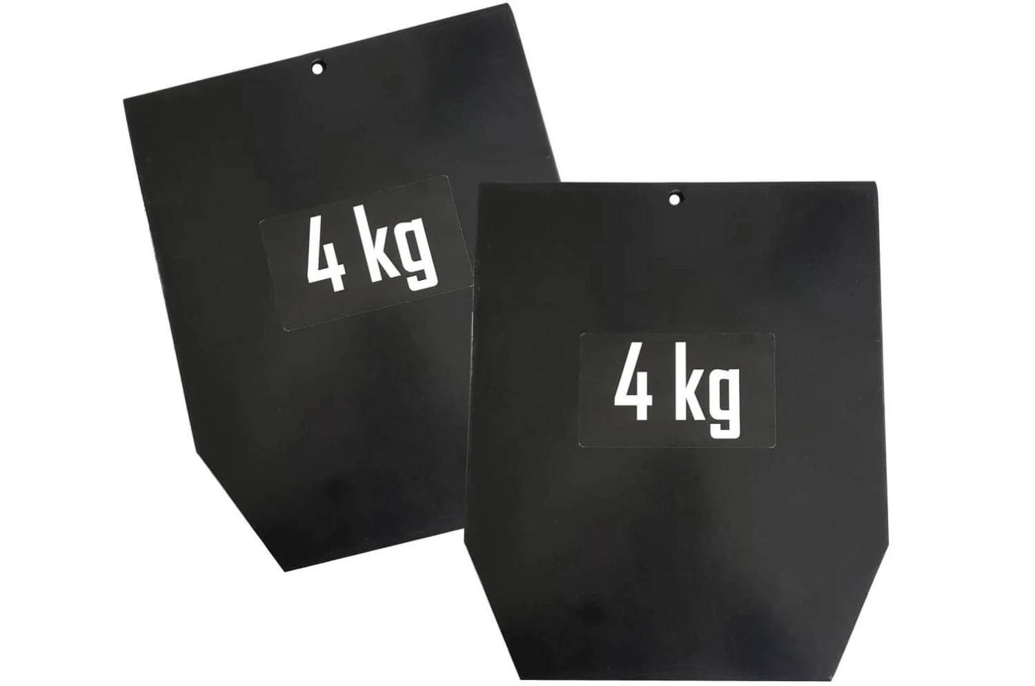 Ajoutez du poids à votre gilet avec cette paire de plaques d’acier de 4 kg chacune.