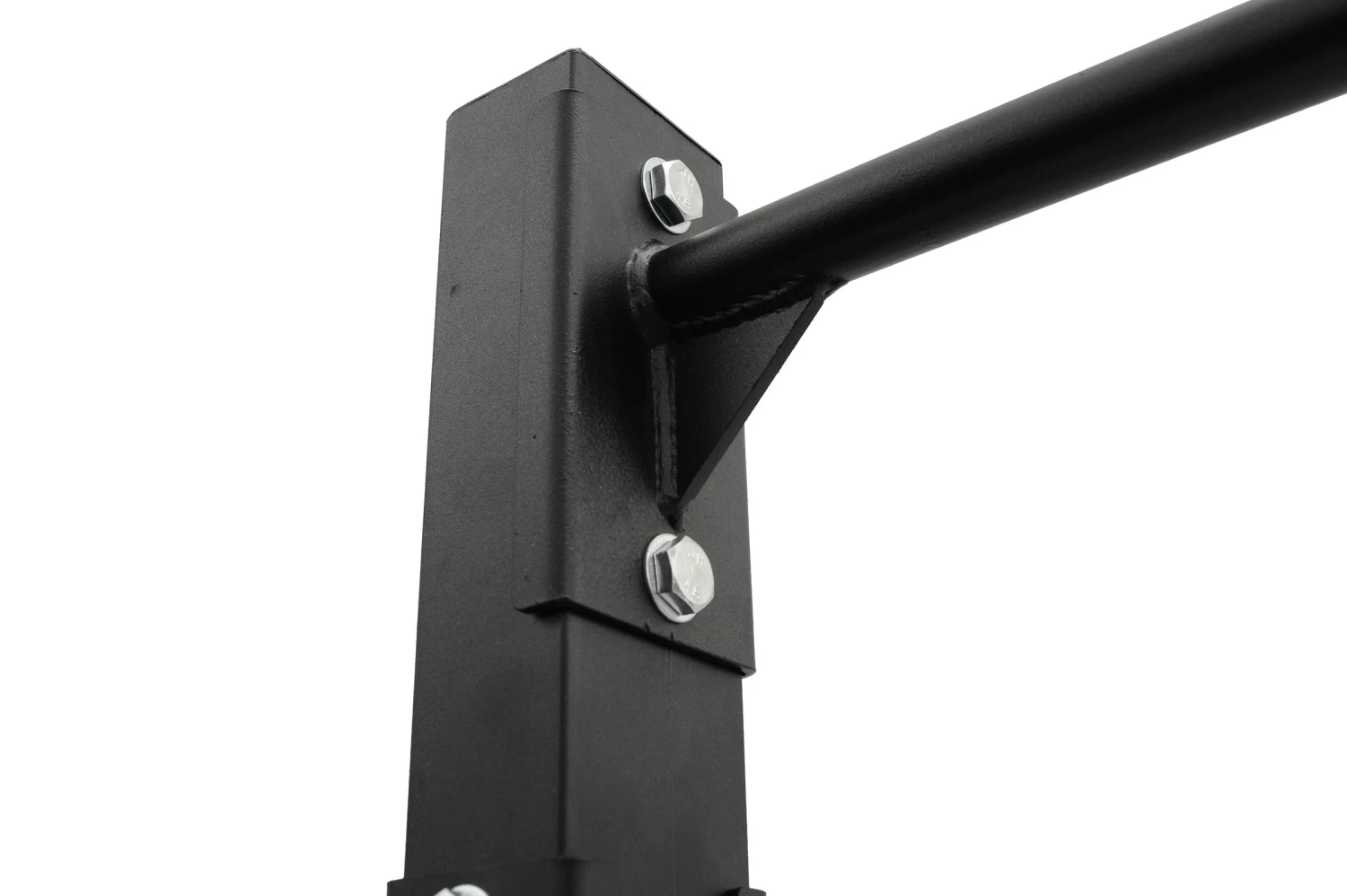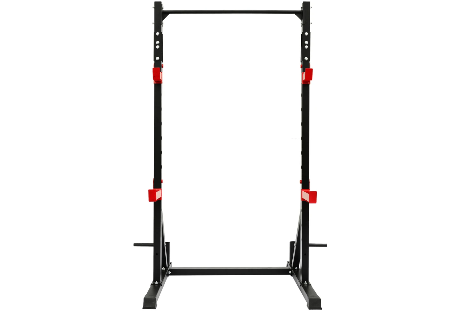 Il portera parfaitement vos Poids et barres de musculation et s’intégrera avec votre banc de musculation. Il possède également une barre pour faire des tractions. Les crochets peuvent facilement être réglés sur 13 hauteurs différentes grâce à leurs design modulable. Vous pouvez stockez vos poids Olympique de chaque côté du Power rack.