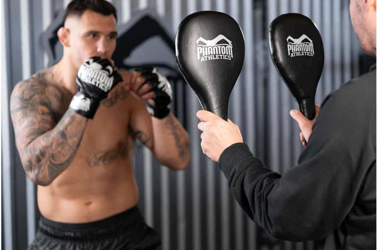 Les Phantom Boxing Paddles sont l’appareil d’entraĂ®nement idĂ©al pour parfaire votre prĂ©cision et votre timing en boxe. Ils peuvent ĂŞtre utilisĂ©s Ă la place des coussinets conventionnels dans l’entraĂ®nement de boxe.