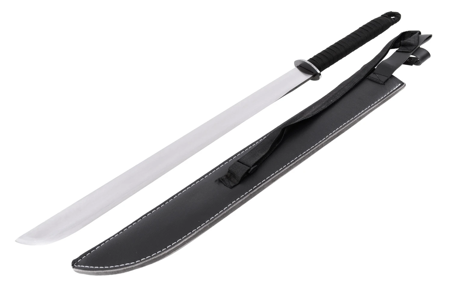 Cette Machette est vendue avec un fourreau en cuir qui possède une bandoulière.