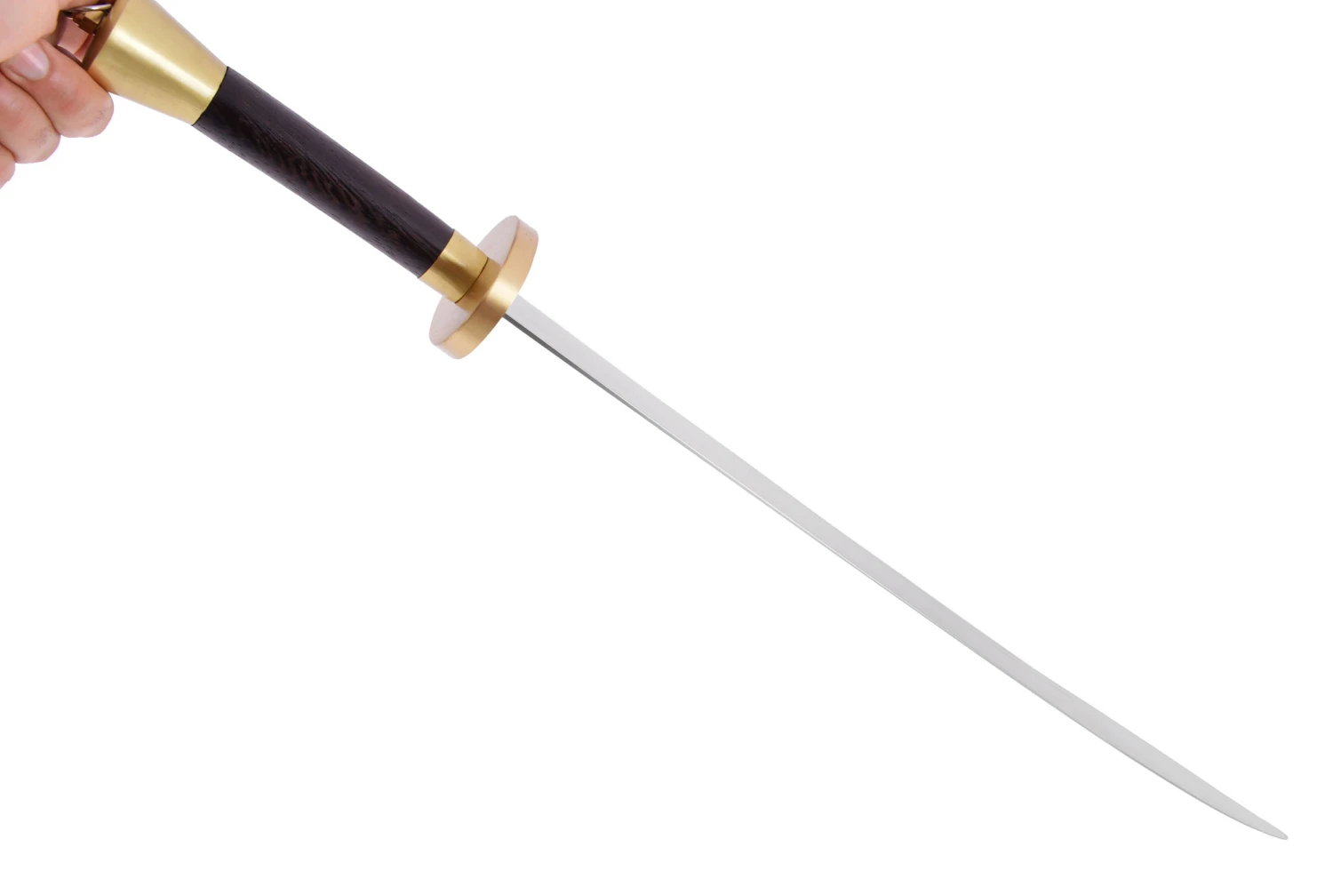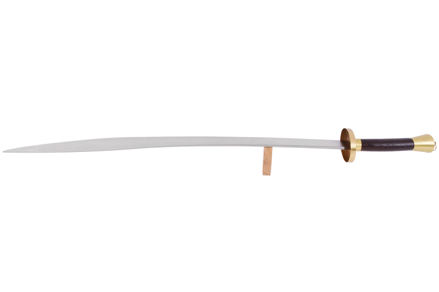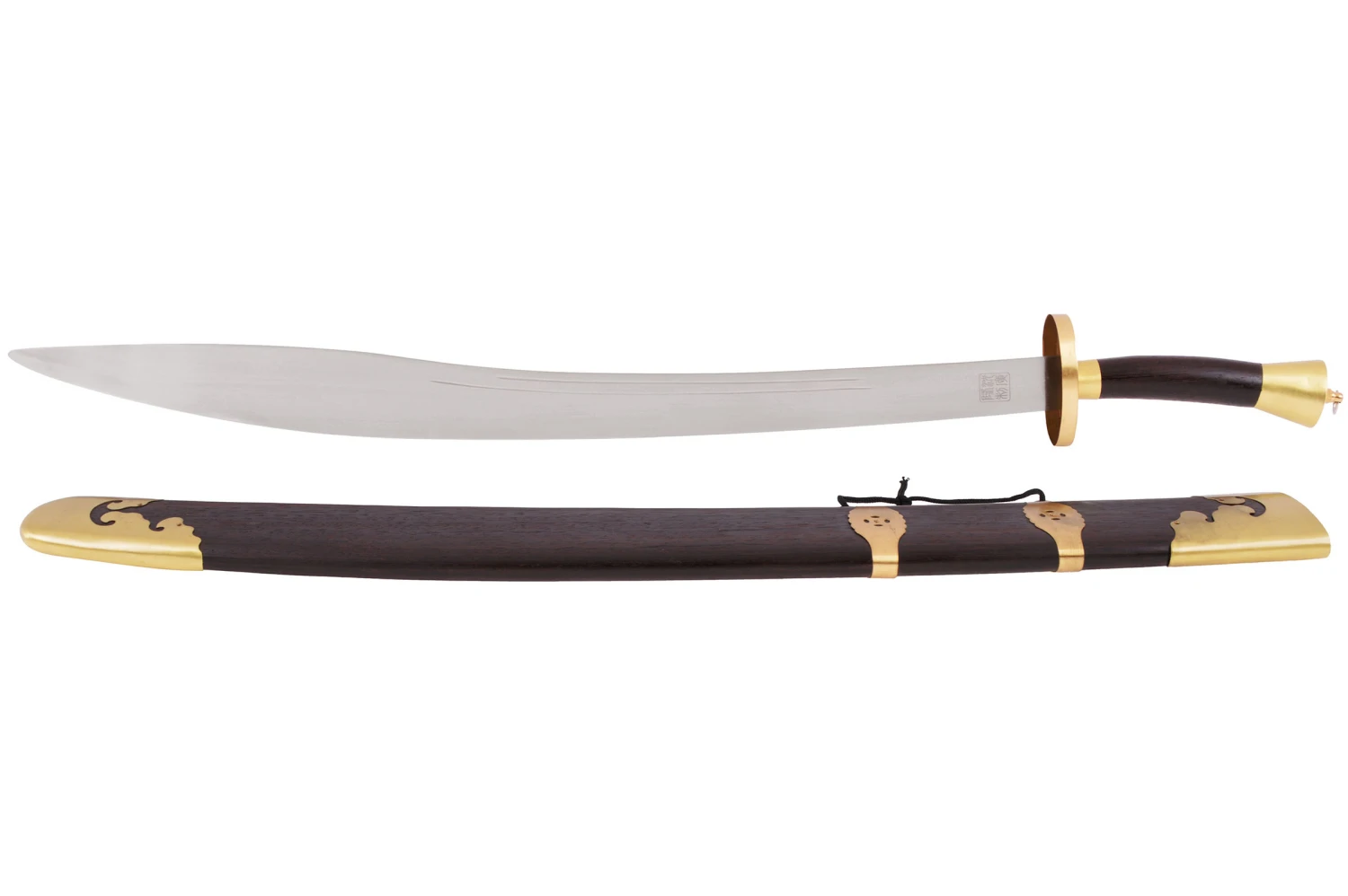 Sabre de type traditionnel, utilisé pour la pratique du Wushu traditionnel. Lame épaisse et rigide en acier inox de bonne qualité, le sabre est robuste et avec de belles finitions, décorations couleur or.