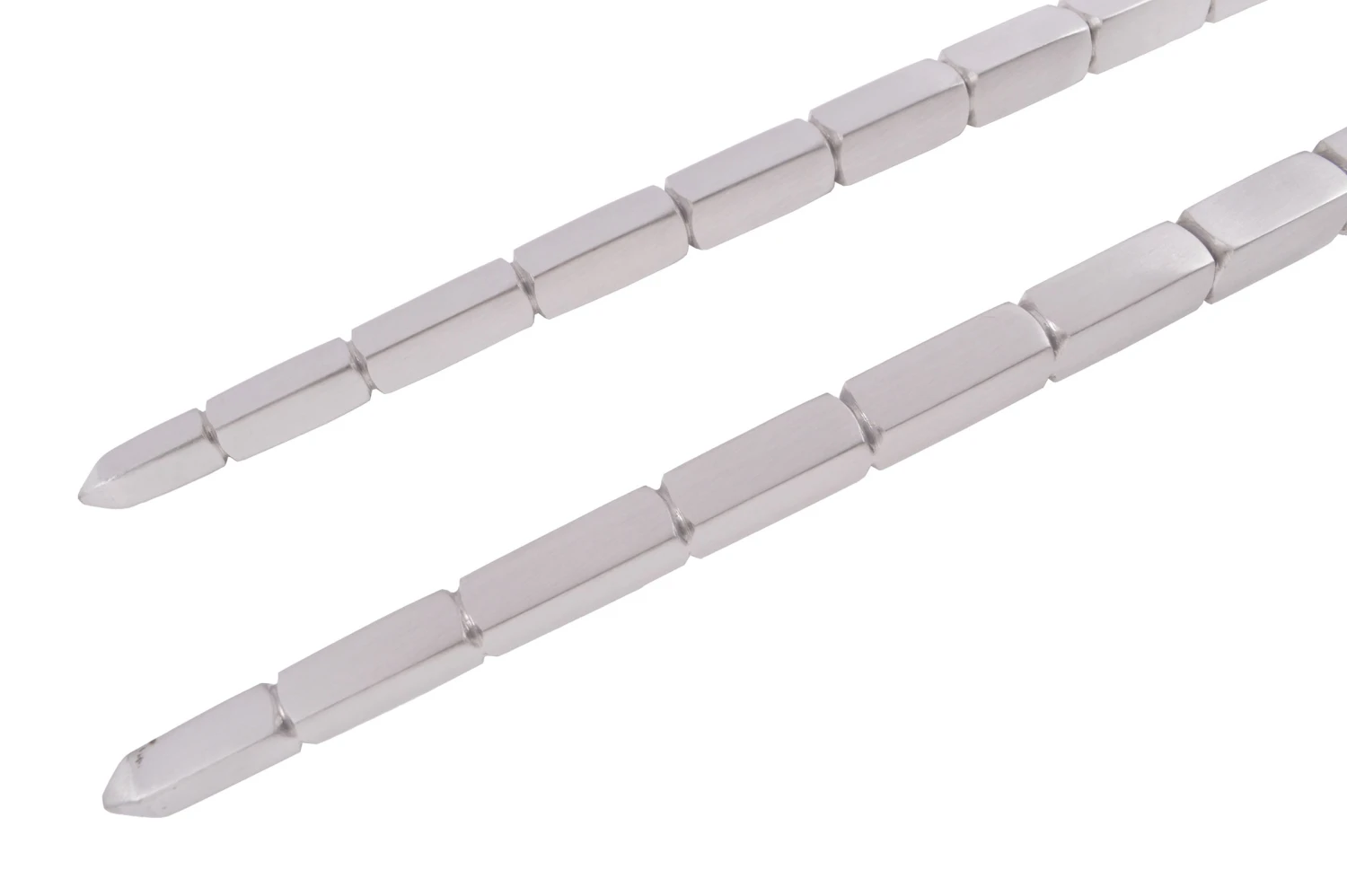 En inox plein, poignée et lame d’un seul tenant, garde soudée.