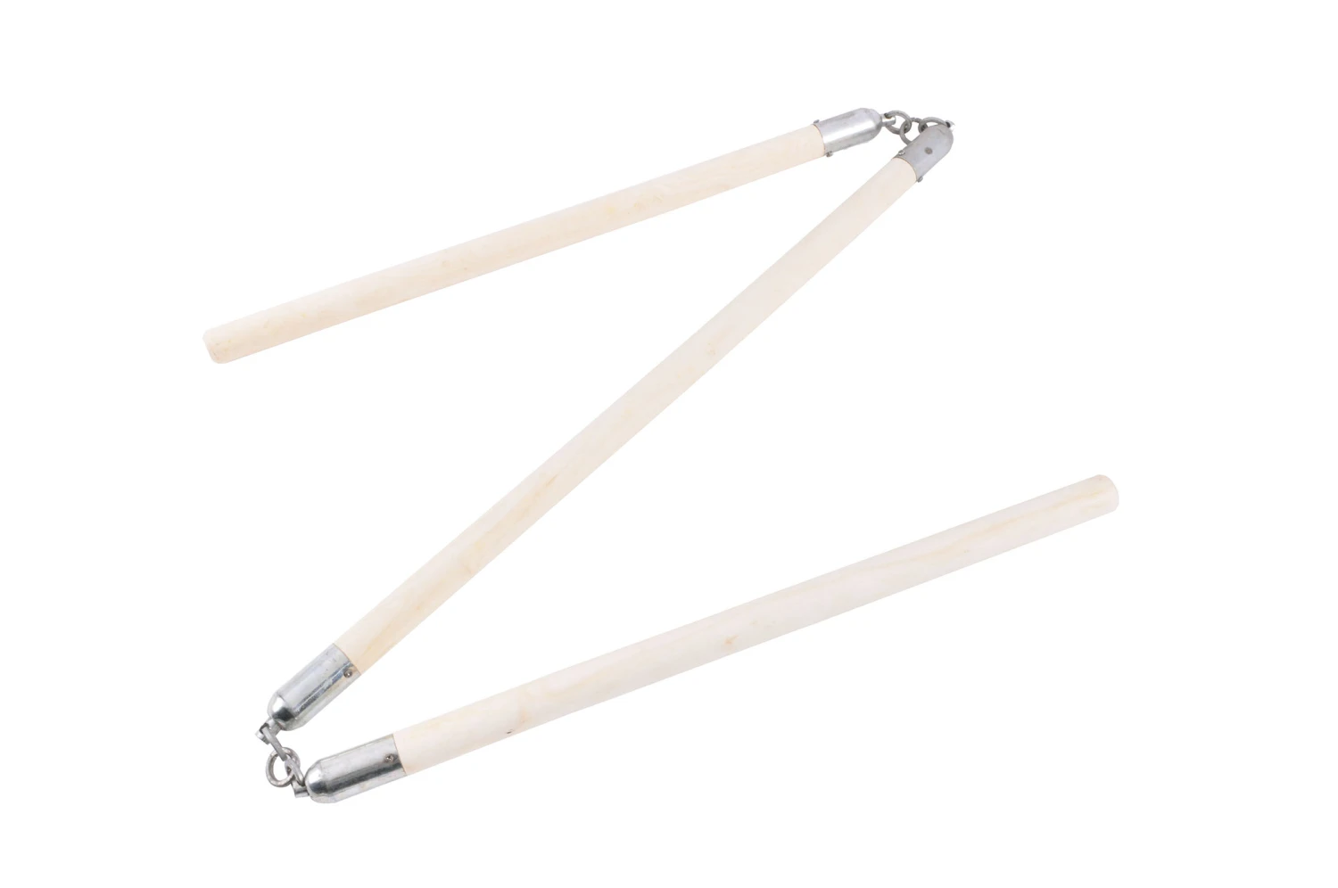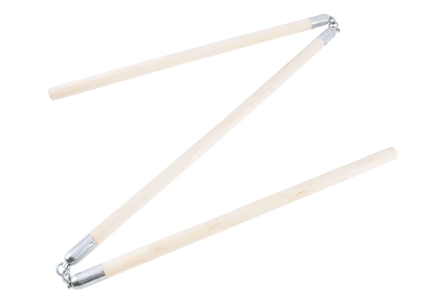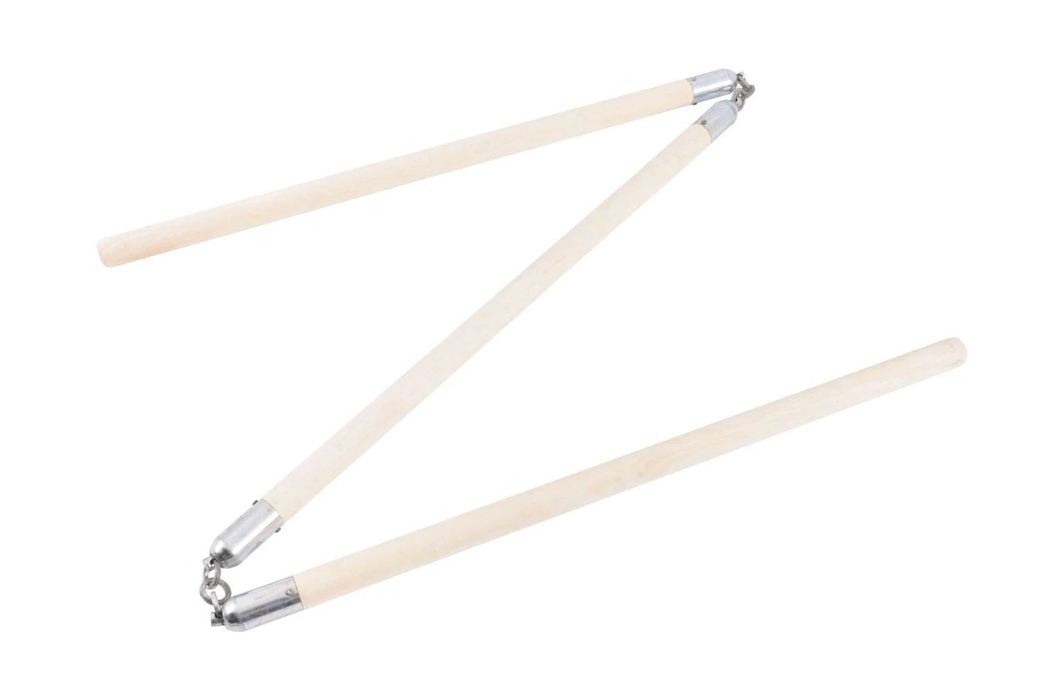 Tri-bâton, pour la pratique du «San Jie Gun» moderne (tri-bâton, style du nord). Bâton articulé en bois, composé de trois branches, reliées par un système d’anneaux.